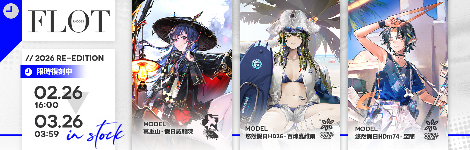 活動說明:活動期間,【時代系列 - 化花 - 號角】、【瑪爾特系列 - 下一頓午茶 - 斯卡蒂】等幹員時裝將在時裝商店復刻上架並限時販售