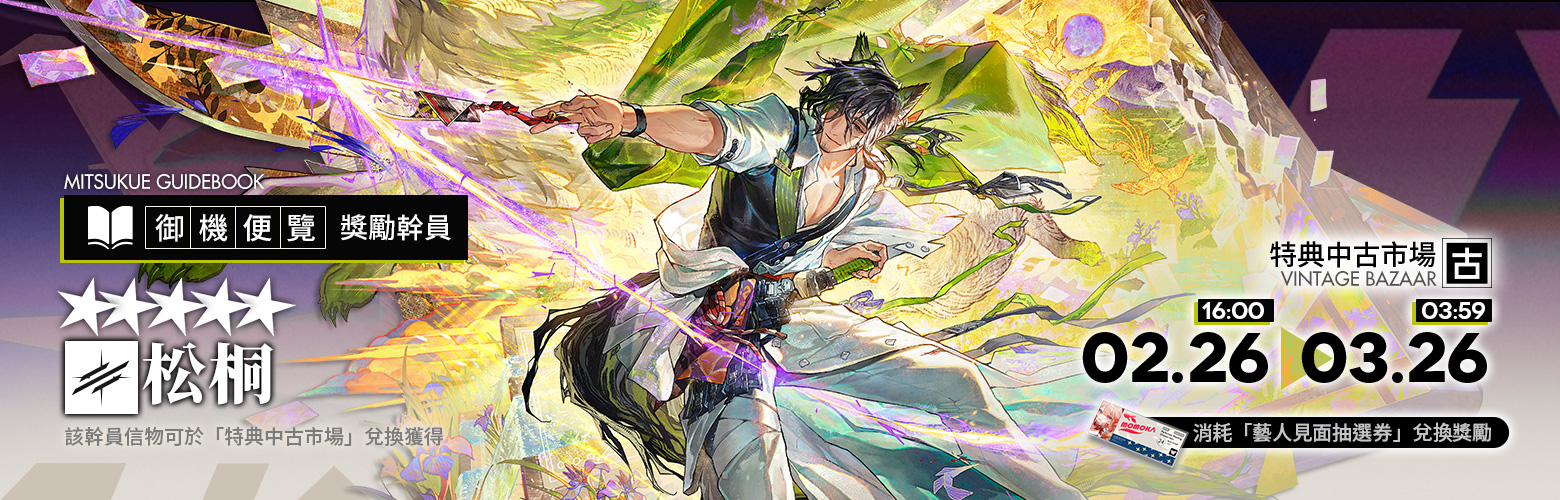◆新增幹員【松桐】僅在本次「墟」活動中獲取,暫不加入【不歸花火】、任何【標準尋訪】及【中堅尋訪】