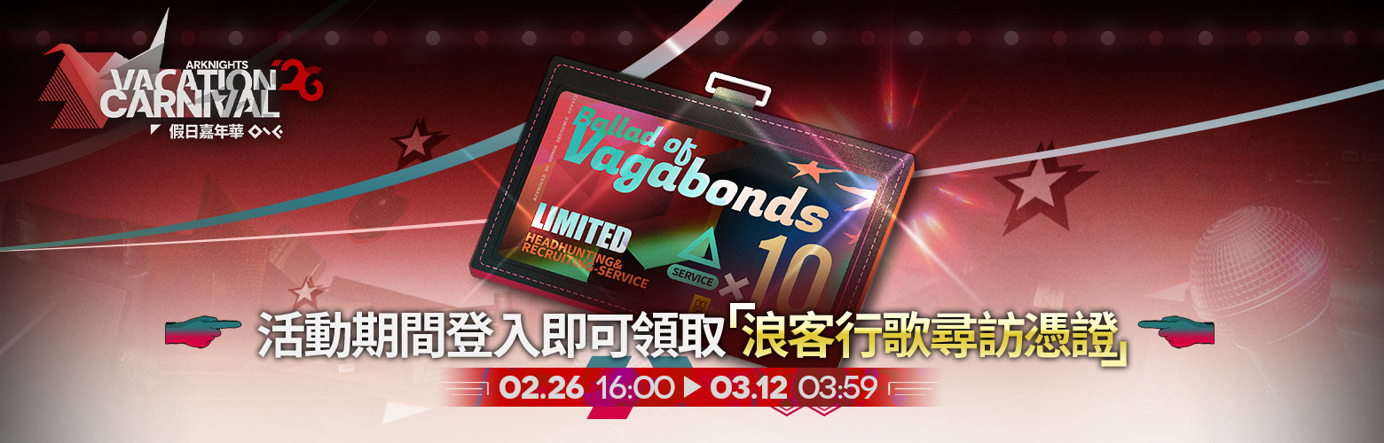 活動說明:玩家在活動期間進行登入即可在活動頁面中領取登入獎勵:[浪客行歌尋訪憑證]*1