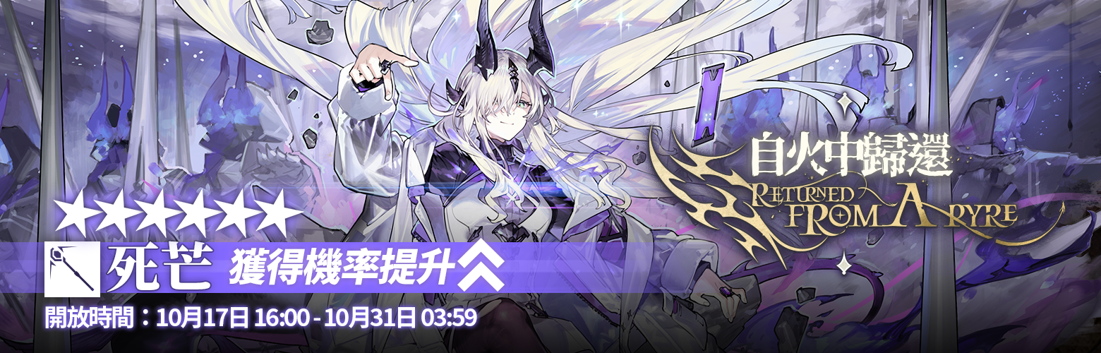 ◆新增幹員【死芒】、【鉬鉛】除加入【自火中歸還】尋訪外,將在10月31日04:00後加入並常駐其餘【標準尋訪】卡池