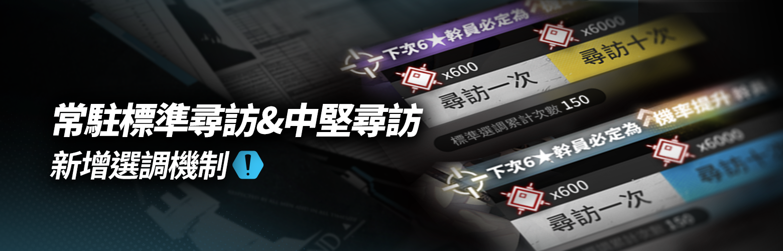更新說明:10月17日 16:00版本更新後開啟的常駐標準尋訪、中堅尋訪將新增選調機制: