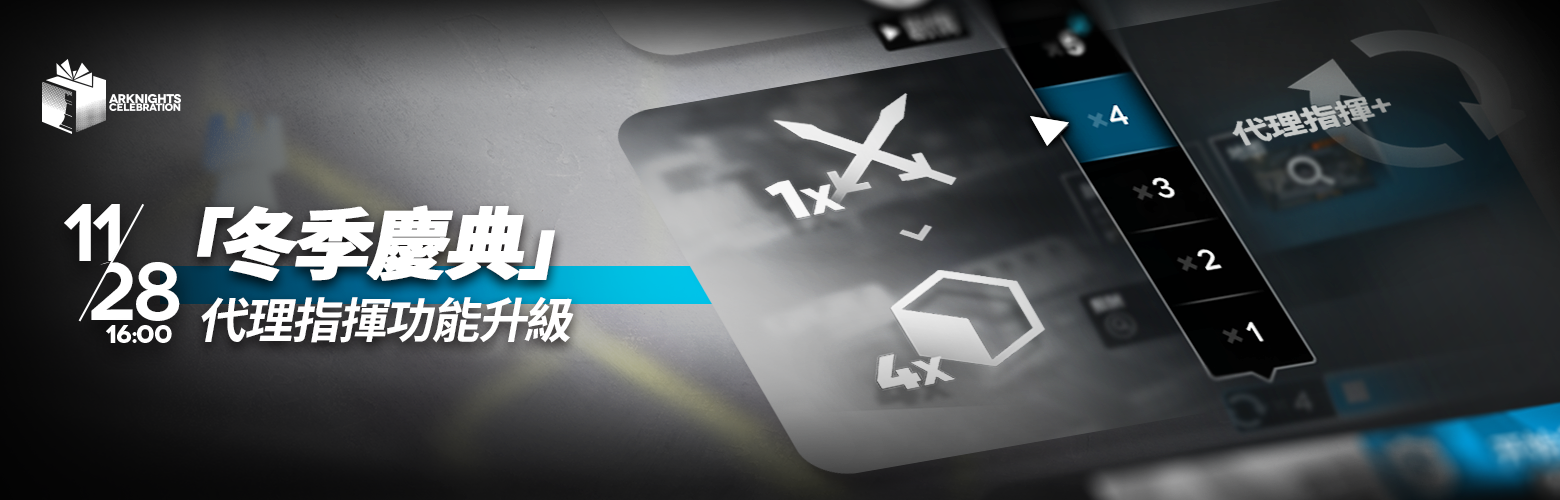 更新說明:11月28日 16:00版本更新後,代理指揮將升級為代理指揮+,完成單次作戰後,玩家消耗數倍的理智便可進行對應倍數的獎勵結算