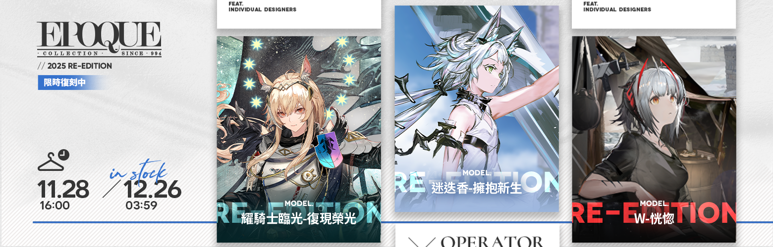 活動說明:活動期間,【時代系列 - 雪霽 - 鈴蘭】【0011製造系列 - 燈如晝 - 曉歌】等152款幹員時裝將在時裝商店復刻上架並進行限時販售