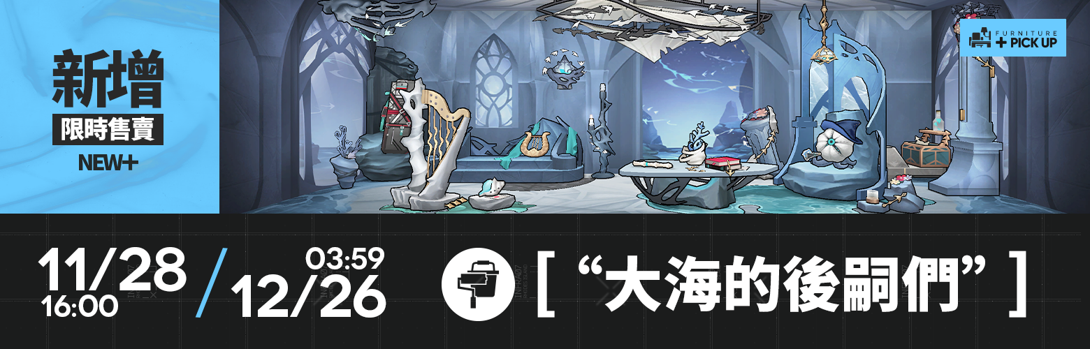 活動說明:活動期間新增活動限定傢俱【大海的後嗣們】系列與【潘格尼尼的銃械工坊】系列