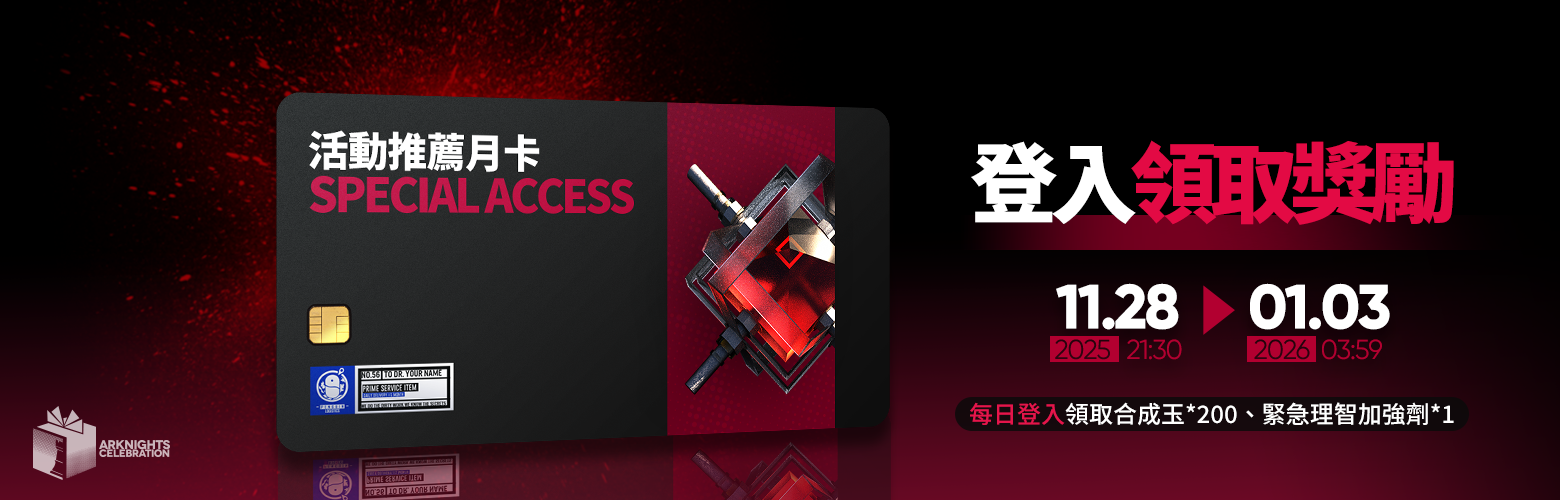 活動說明:活動期間內,玩家每日登入可領取合成玉*200、緊急理智加強劑*1,總共可領取30次