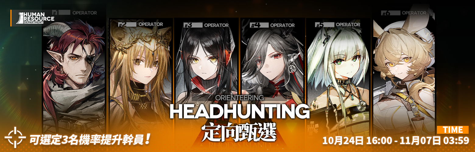 活動說明:活動期間,玩家可在當期甄選的幹員範圍內自主選擇並鎖定3名六星幹員和3名五星幹員作為當期【定向甄選】尋訪出現機率提升的幹員(當期【定向甄選】可能出現的六星幹員僅包括自選機率提升的3名六星幹員)