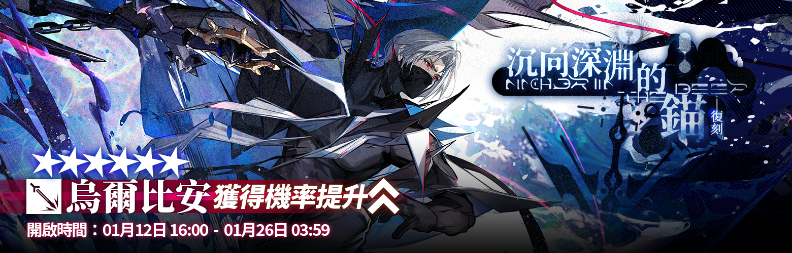 活動說明:活動期間【沉向深淵的錨】限時尋訪開啟,該尋訪中以下幹員獲得機率提升