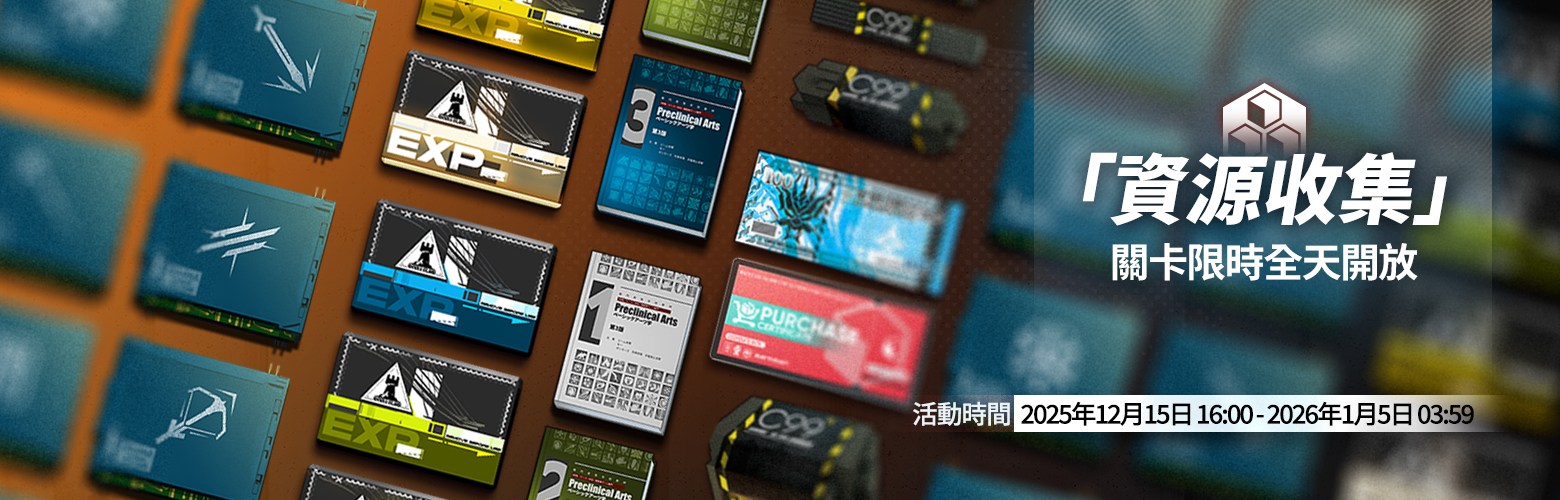 活動說明:活動期間內「資源收集」所有關卡將進行全天開放